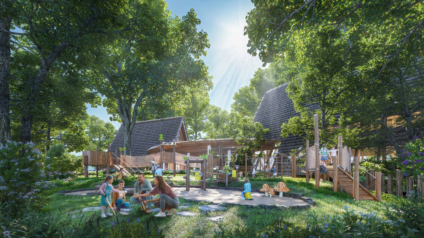 | Không gian xanh | Đại công viên sinh thái, công viên chủ đề quốc tế, trục đường dạo bộ ven sông |